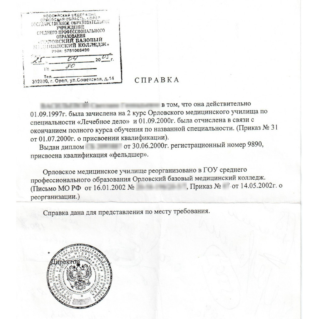 Справка об обучении в техникуме