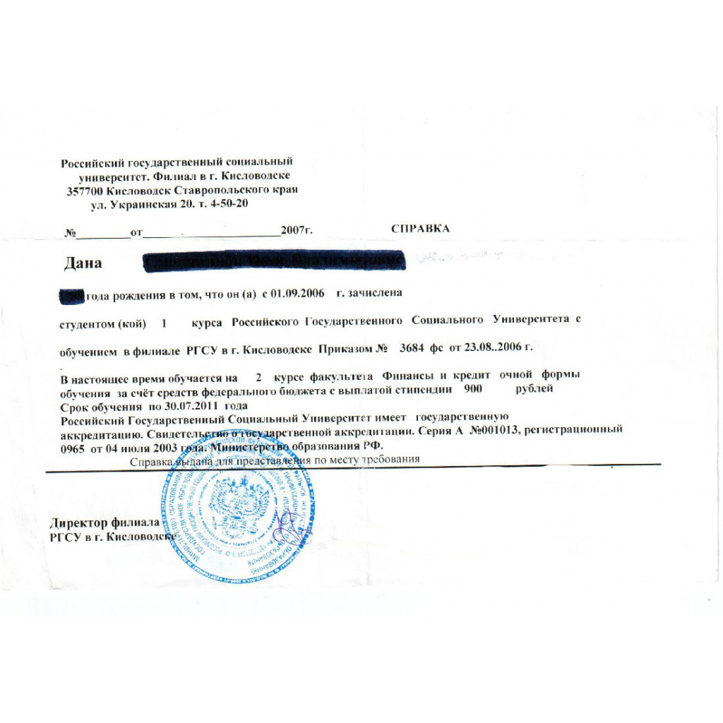 Справка об обучении в ВУЗе