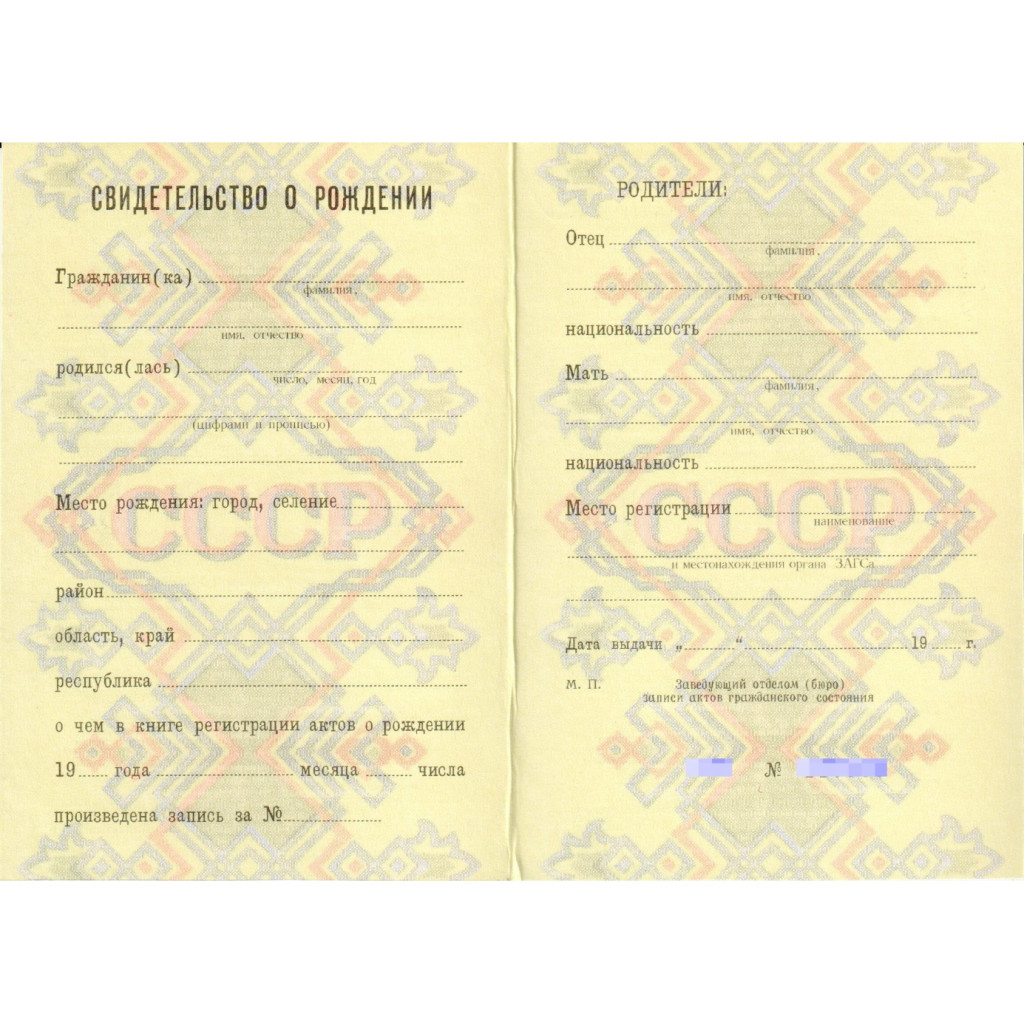 Свидетельство о рождении РСФСР 1971-1989