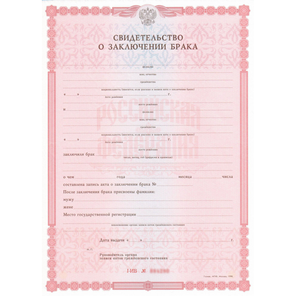 Свидетельство о заключении брака 1998-2018